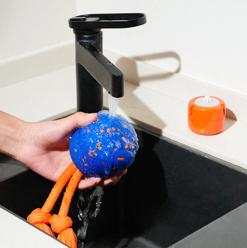 Simply remove the outer shell and rope and rinse with water to keep the toy fresh and hygienic.